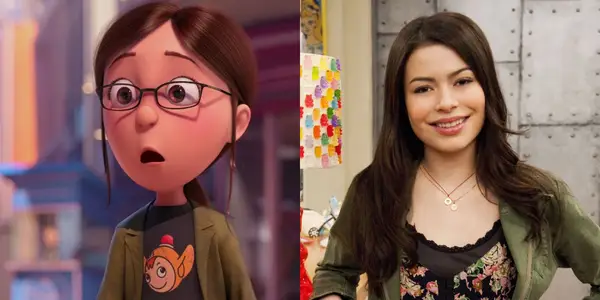 | Dana Gaier | Edith | Obrázek Edith se usmívá v Despicable Me a Dana Gaier vypadající zmatená |