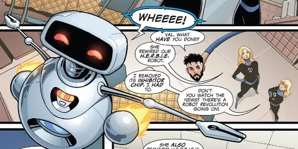 HerbyはFantastická čtyřkaの貴重なメンバーですが、 Jeho mechanická nesmrtelnost je vždy hrozbou pro tým kvůli pirátství nebo korupci zlými silami. . Strach z lidí z hlediska umělé inteligence je velmi zaručen, zejména v Marvel Universe. Harvey vysvětluje, jak bytost, která nemůže opravdu zemřít, protože nežije sám a způsobuje neuvěřitelně nepříjemný pocit, který ho dělí fantastickou čtyřčlennou rodinou. Tento pocit, který má Harvey ve své přítomnosti, naznačuje, že je vždy možné přilákat jeho tvůrce.