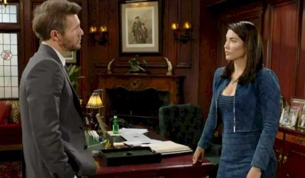 Ve své kanceláři se Steffy chová vystresovaně, když se objeví Liam. Diskutují o nadcházejícím summitu a Steffy se šklebí, že by si přála, aby na něj mohla odejít hned. Je to bez Loganu. Chtěl bych tam žít. Liam se zasměje. Steffy přijme hovor a pak řekne Liamovi, že je nadšená, že může trávit čas v Monte Carlu se svým otcem, daleko od všeho, co se týká Logana. Vypráví mu o nalezení Brooke a Ridge spolu v jiné místnosti. nemůžu to nevidět. Liam si myslí, že to přežije a situaci s Hope. Steffy říká, že by si s Hope mohla rozumět, kdyby nechala svého manžela na pokoji a přestala obhajovat Sheilu. Liam se zmíní, že se zastavil ve Finnově kanceláři, aby mu dal uznání za to, že pro změnu dal ji a svou rodinu na první místo.