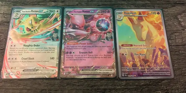 Kromě paluby a reklamních karet, budov Obdržel jsem speciální ilustraci od týmu Rocket Mewtwo EX v prvním balíčku, raketový perský ex ve třetím balíčku a vzácný rychlý popel ve čtvrtém balíčku . Schopnost Rapidashu, uzdraví vás na pochod, znamená, že do křivky můžete nakreslit dopis. Soupeř osudu Umístění. Tuto funkci mají také pravidelné karty.