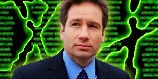 Upravený obrázek ukazující Davida Duchovnyho jako Fox Mulder v X-Files.